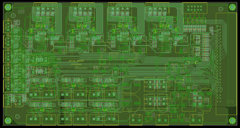 驱动板:多个电机输出、多个不同电压输出和多个信号输出 ,要考虑到这些输出的分区、电流大小扇孔的数量还有布线的宽度,输出接口装配结构等问题。